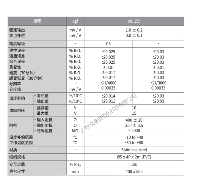 五、韓國(guó)凱士CAS品牌 BCLS-150L稱重傳感器技術(shù)參數(shù)