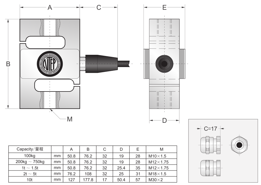 -量程可選:100,200,500,750,1000,1500,2000,2500,5000,10000 kg