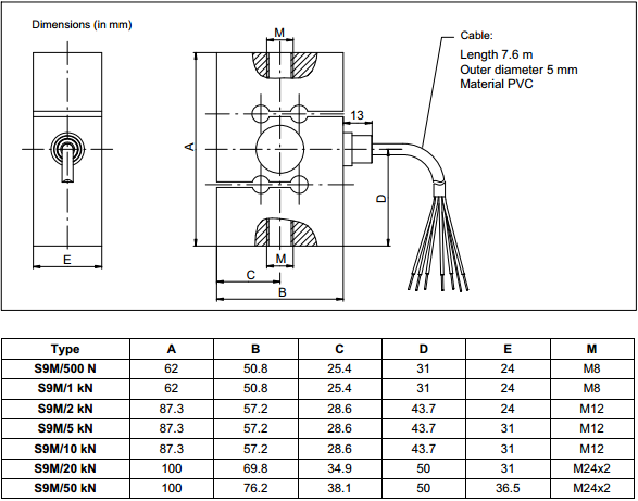 S9M/500N,S9M/1KN, S9M/2KN,S9M/5KN,S9M/10KN,S9M/20KN,S9M/50KN,