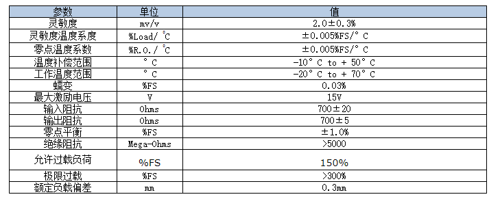 CL稱重傳感器技術(shù)參數(shù):
