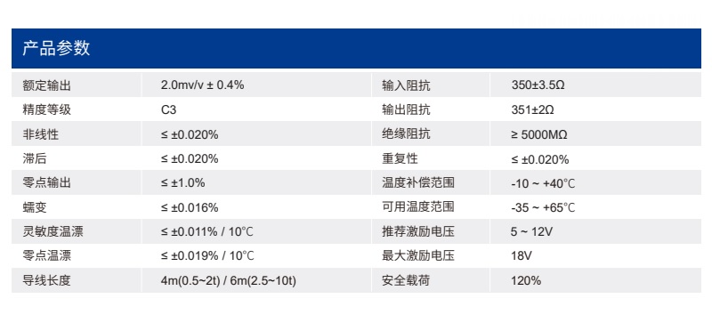 四、SLBC-ME稱重傳感器技術(shù)參數(shù)