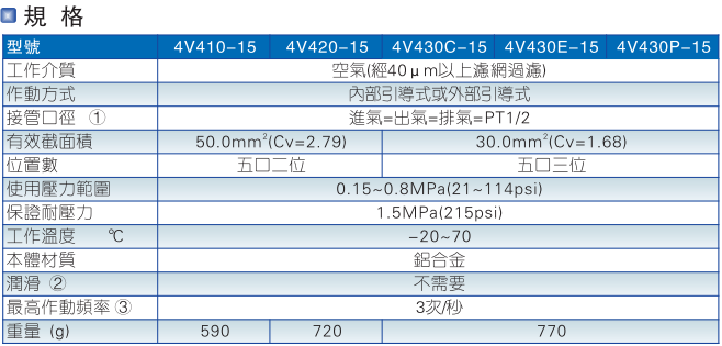 4V400系列電磁閥產(chǎn)品特性: