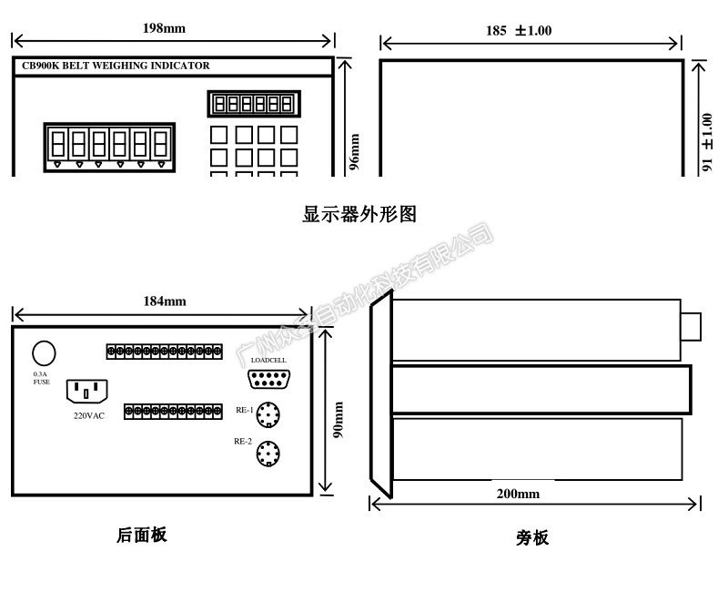 三、CB900K皮帶秤稱重控制器產(chǎn)品尺寸
