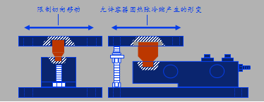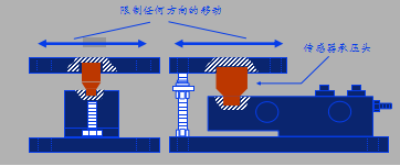 半浮動模塊是為了防止容器因形變影響稱量精度而設(shè)計的,其頂板允許沿徑向移動,在切向的運動則受限位限制以防止秤體轉(zhuǎn)動。